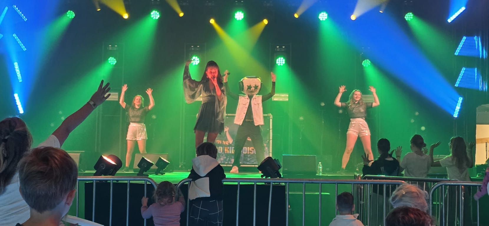 - Loco Kids Band – volledige liveband met zangeres en mascotte Starhead, 75 min. Meer muzikaal spektakel voor grotere podia.